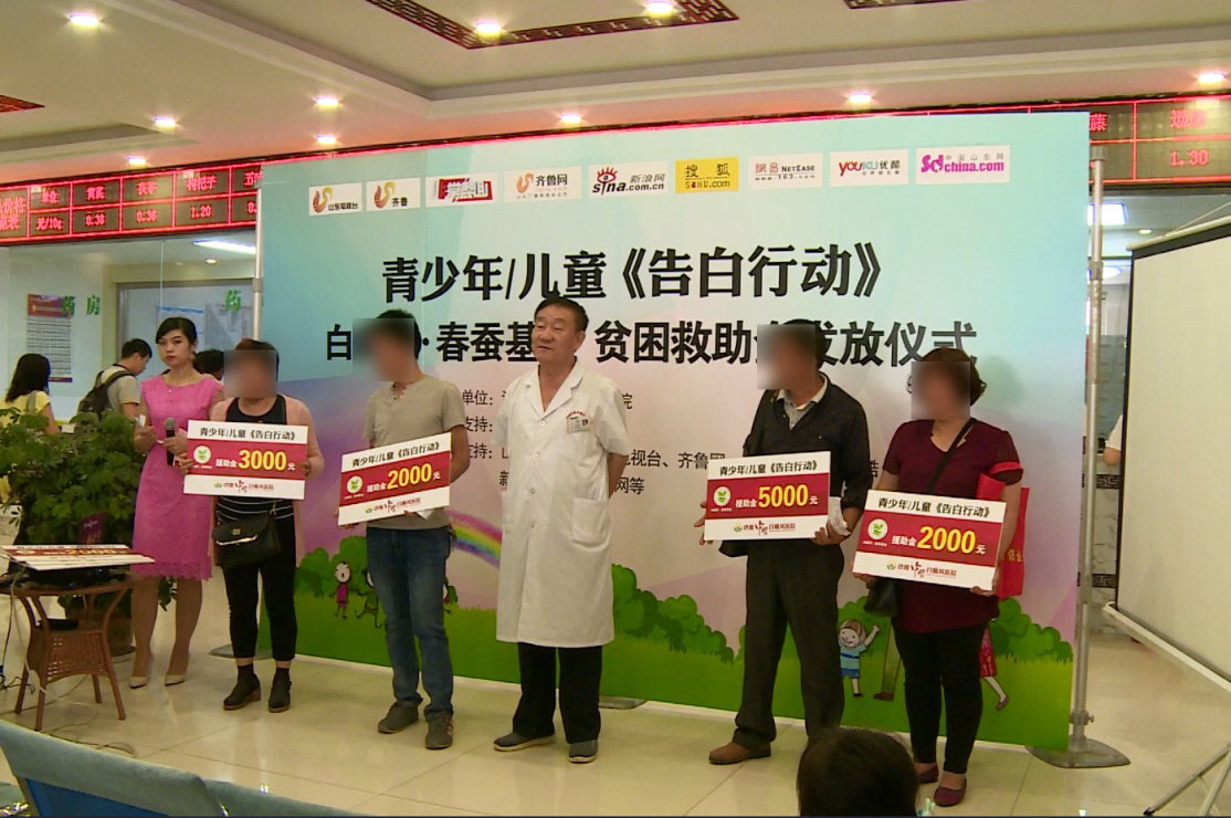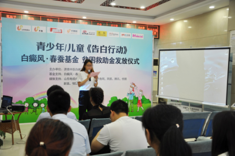 5月28日,山东电视台《非常帮助》栏目组、春蚕基金和济南中医白癜风医院共同开展“告白行动”公益援助发放仪式,活动为100名贫困患者发放近五十万元公益基金。