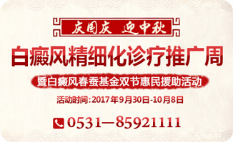 庆国庆,迎中秋!值此国庆黄金周,白癜风春蚕基金联合济南中医白癜风医院特别开展“白癜风精细化诊疗推广周”活动,以针对不同区域、不同类型的白斑,严格执行精确诊断、精确分型、精细治疗,制定系统的、个性化的白癜风预防治疗方案,帮助众多白癜风患者实现康复愿望。