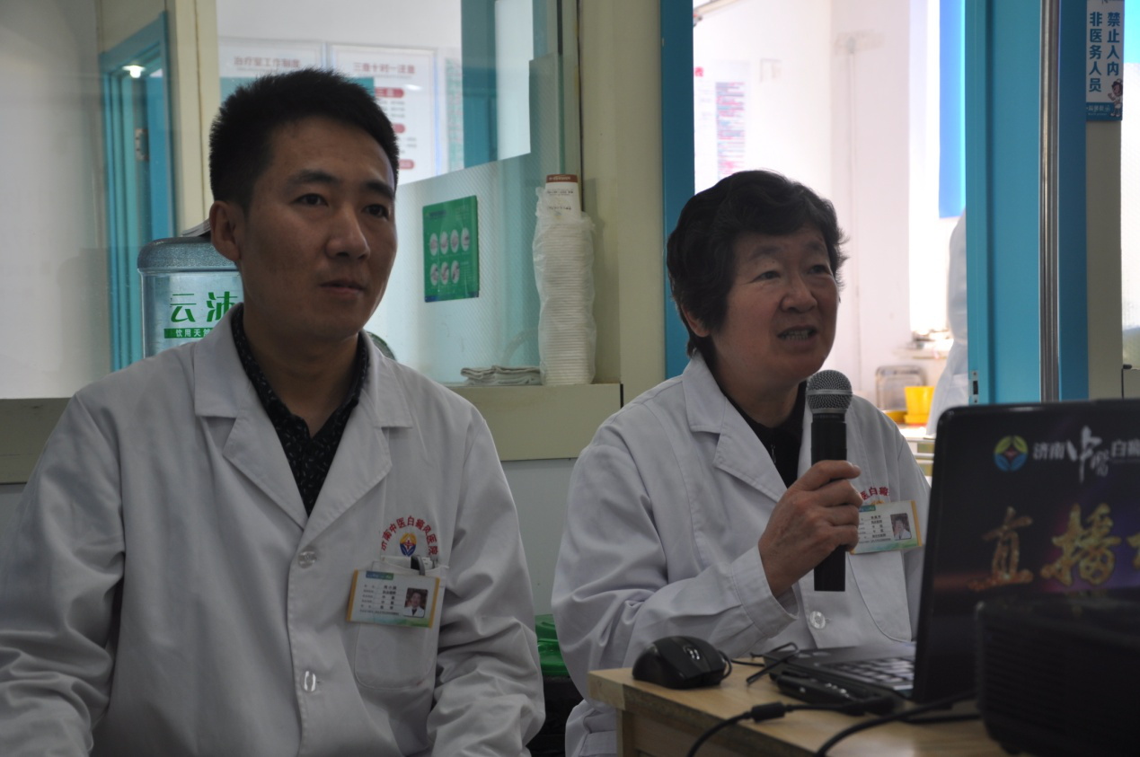图为李凤芹主任与周小园大夫为大家讲述中医养生知识