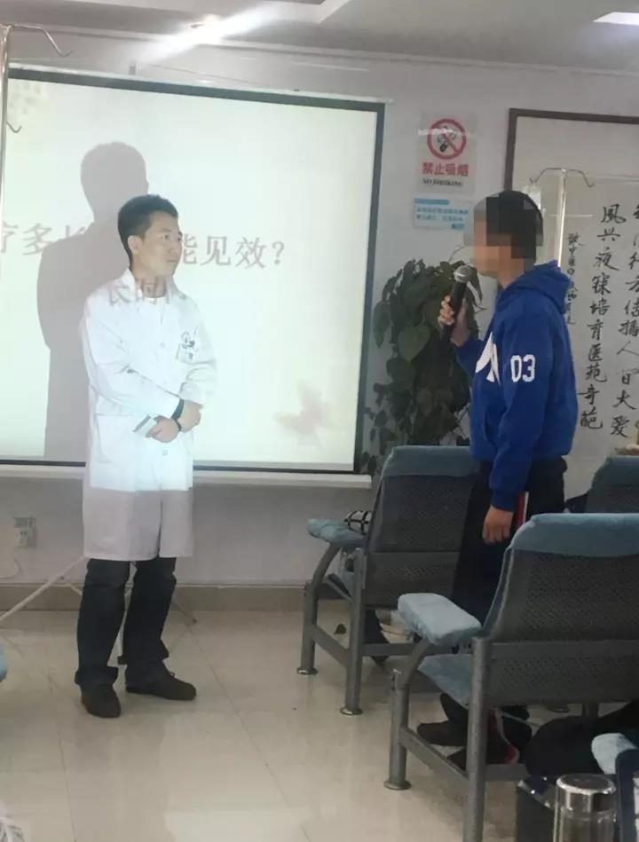 为了让大家加强对白癜风的认识和理解,周小园大夫与患者朋友们现场互动,对于积极参与的患者还免费送上中医治疗项目。让笔者印象深刻的是一位十二岁的男孩,他非常积极参与周小园大夫的互动提问,小小年纪却对白癜风的认识十分全面。通过在济南中医白癜风医院的治疗,现在他的白癜风已经好转很多,连他父亲也欣慰的告诉周大夫:“孩子脸上的白斑基本没有了。”还有患者为大家加油打气,告诫大家要不断坚持,相互鼓励。
