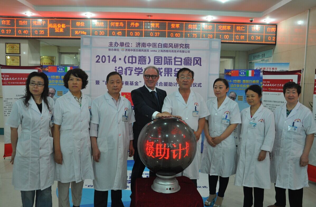 本次公益救助平台的建立,得到了国内外白癜风诊疗界专家教授及一线皮肤科医生的鼎力支持。意大利罗马马可尼大学皮肤病与性病学教授、世界卫生学院皮肤科学院主席Lotti教授、山东中医药学会皮肤病专业委员会,副主任委员渠鹏程院长、省中医药管理局局长贾青顺局长、东道主泰安市中心医院皮肤科主任医师,泰安市皮肤病专业委员会主任委员,山东省中医药学会皮肤病专业委员会委员郭辉教授、济南中医白癜风医院彭乃河院长、济南中医白癜风医院学术带头人闫绳宏院长、济南中医白癜风医院学科带头人周小园主任以及来自国内一线的皮肤科医生共同启动了2015.(国际)白癜风春蚕救助平台启动仪式。